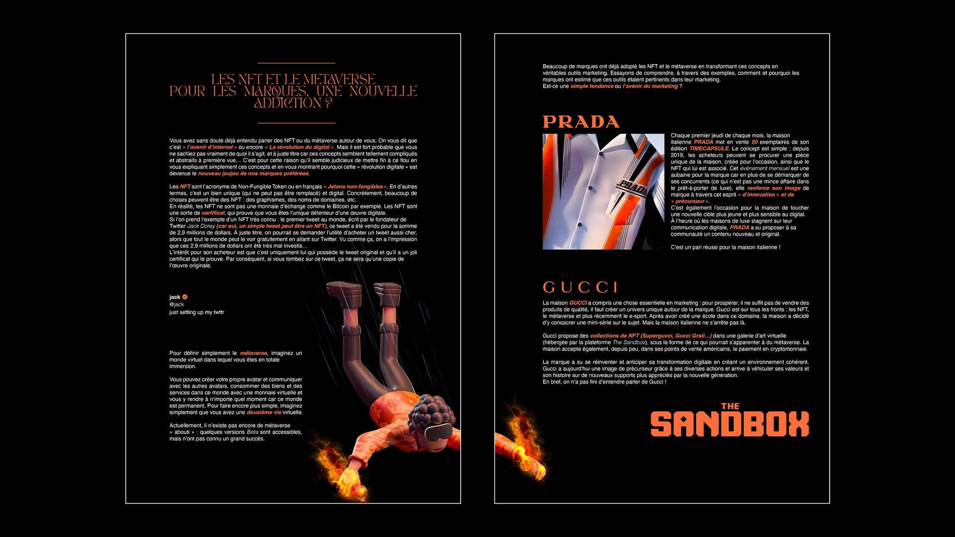 This article popularizes the concepts of NFT (non-fongible tokens) and metaverse, often perceived as complex. It aims to explain how these technologies have become major trends for brands, which see new commercial opportunities.