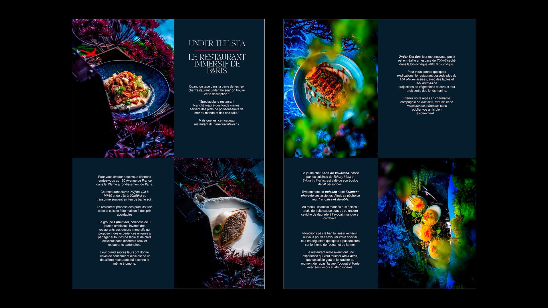 Under The Sea is a spectacular restaurant created by the Ephemera group, offering a fully immersive experience with projections of marine life (whales, sharks, and jellyfish) on the tables and floor.